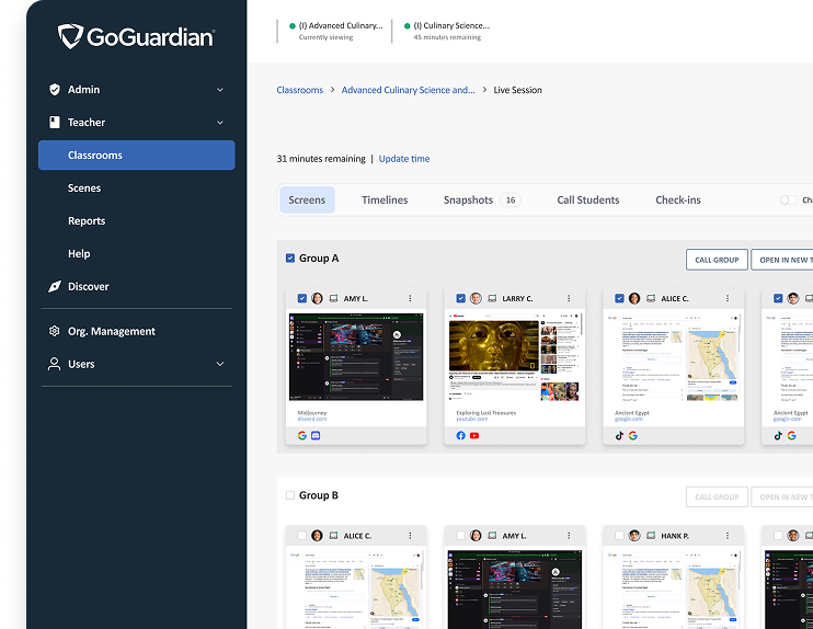 for Admins for TeachersIn the classroom or off-campus, GoGuardian keeps students safer online and makes technology management easy.