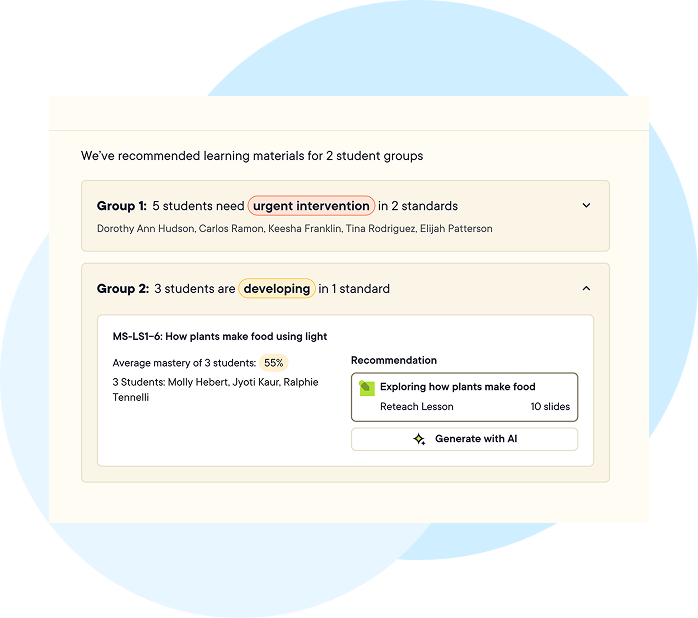 Teachers can instantly generate differentiated content to move each student forward with confidence and consistency.